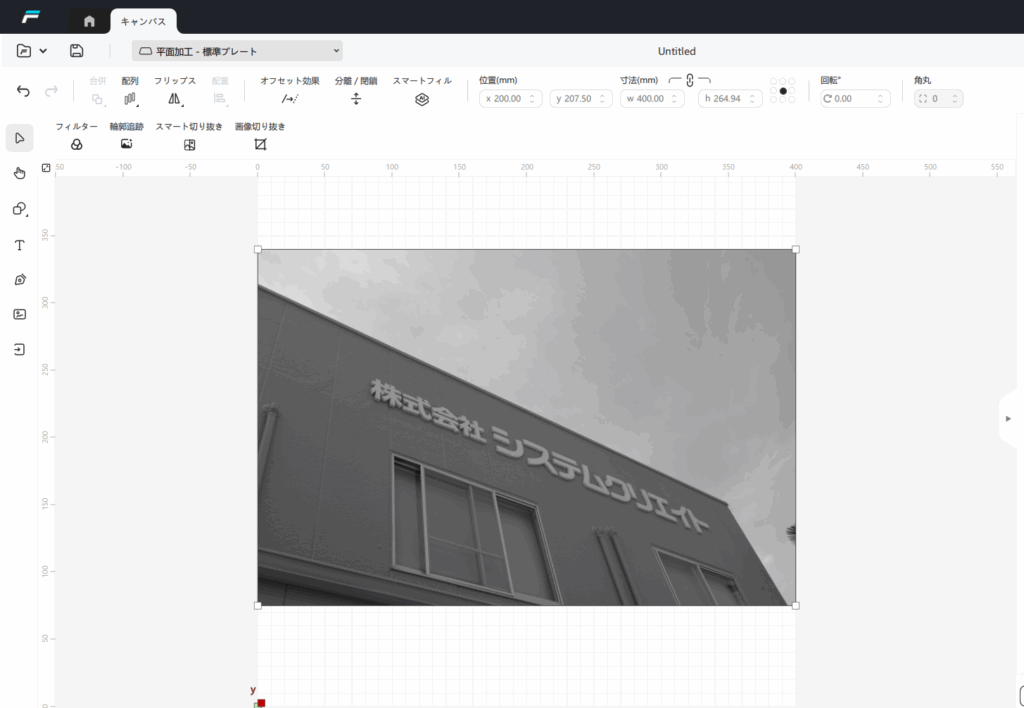 「はい」を押すと、自動で加工エリアに収まるように縮小されます。