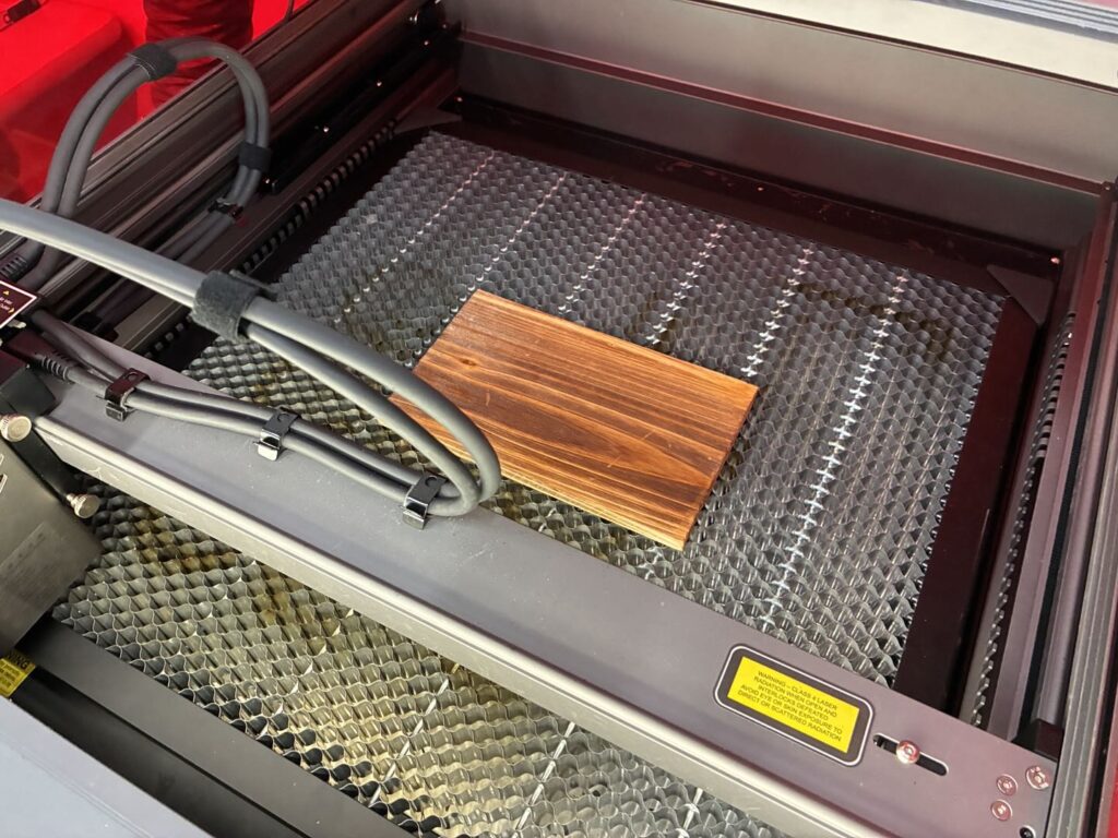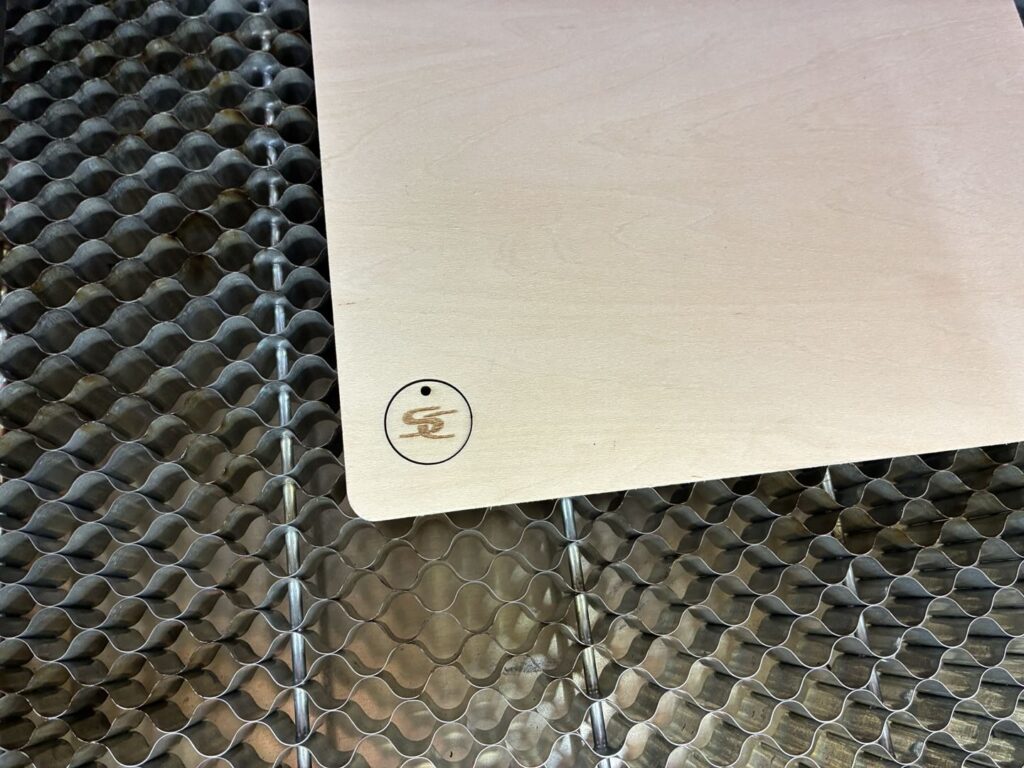 加工条件 | 彫刻 : 速度5000 / パワー10% |切断 : 600 / パワー100 で加工してみます。